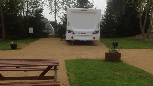 All caravan and motor home pitches have hard standing separated by trees with and without electric hook-up.